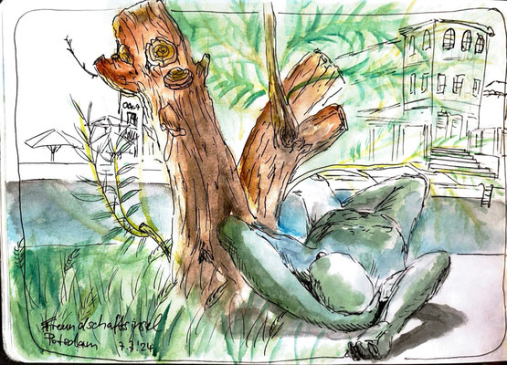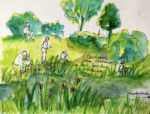 Seit 2020 zeichne ich regelmäßig mit den Urban Sketchers Potsdam (@usk.potsdam) unter freiem Himmel, an verschiedenen Orten in der Stadt. Auch im Urlaub und bei Tagesausflügen sind das Skizzenbuch und die Aquarellfarben meine ständigen Begleiter.